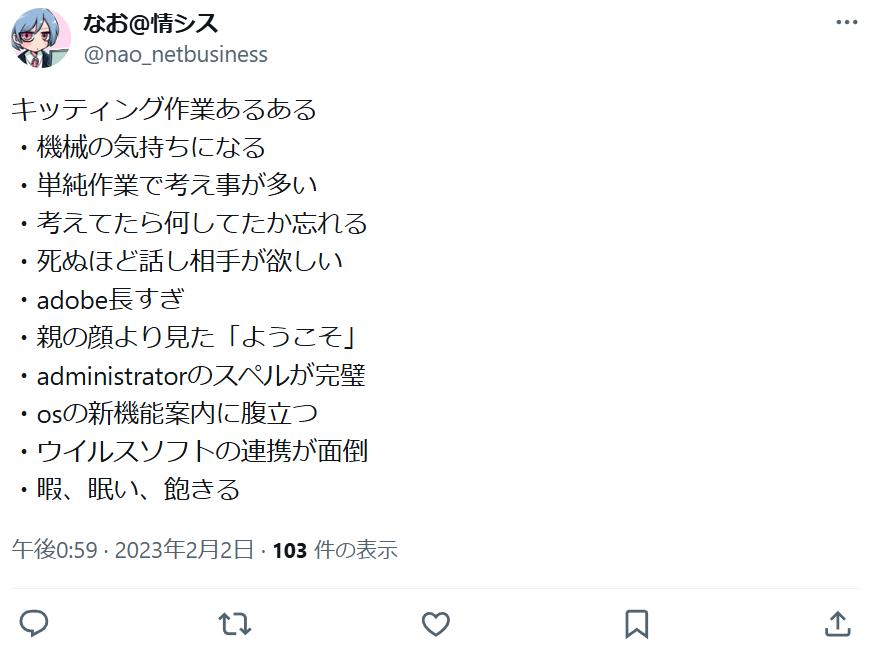 キッティング作業は、基本的にマニュアルに沿って同じ手順を繰り返すことが多い仕事です。